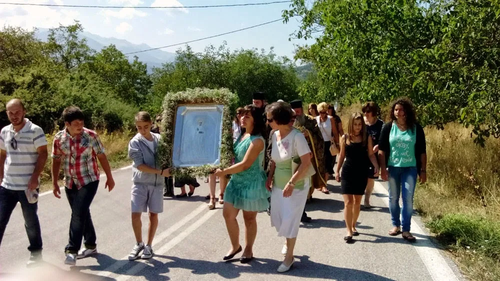 Ακολούθησε αρτοκλασία και περιφορά της εικόνας ή οποία μεταφέρθηκε με τα πόδια από αρκετούς πιστούς στην Κεντρική εκκλησία του Ιωάννου του Προδρόμου στην Κερπινή.